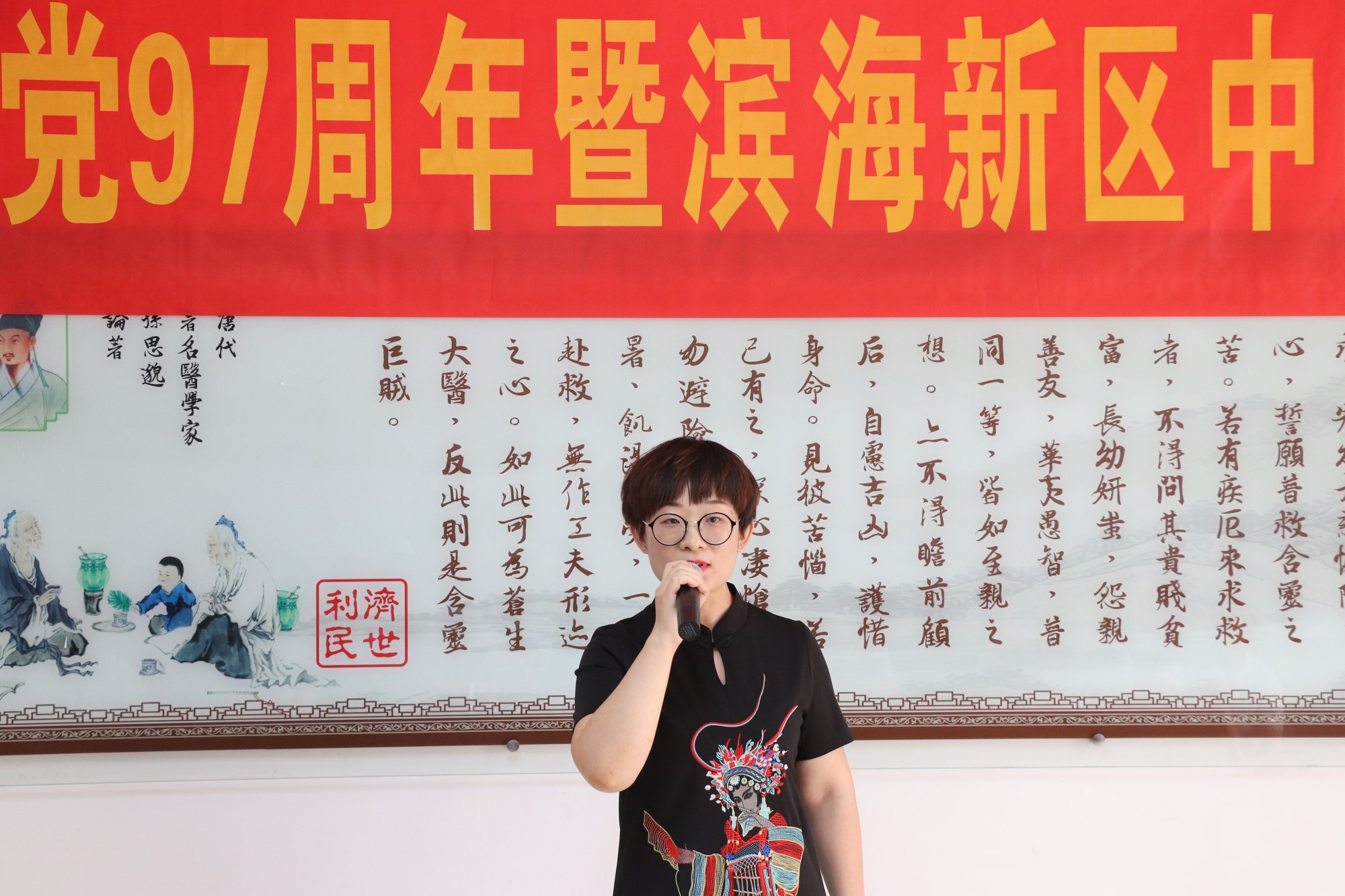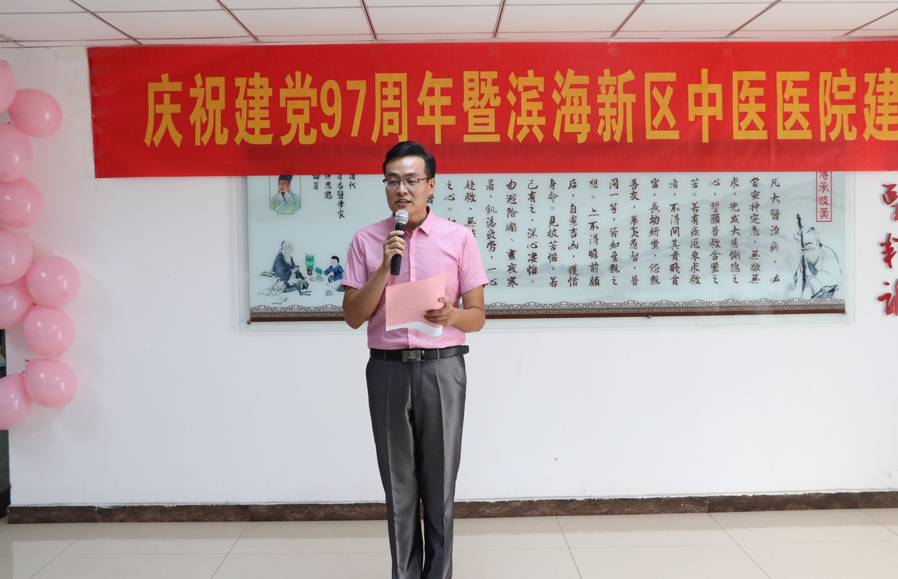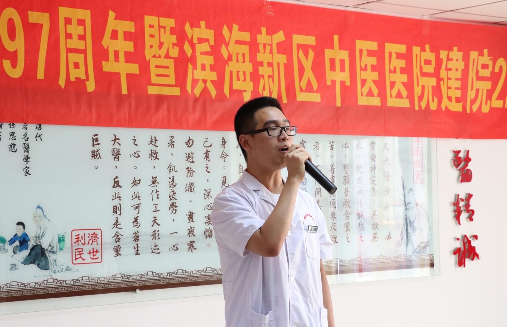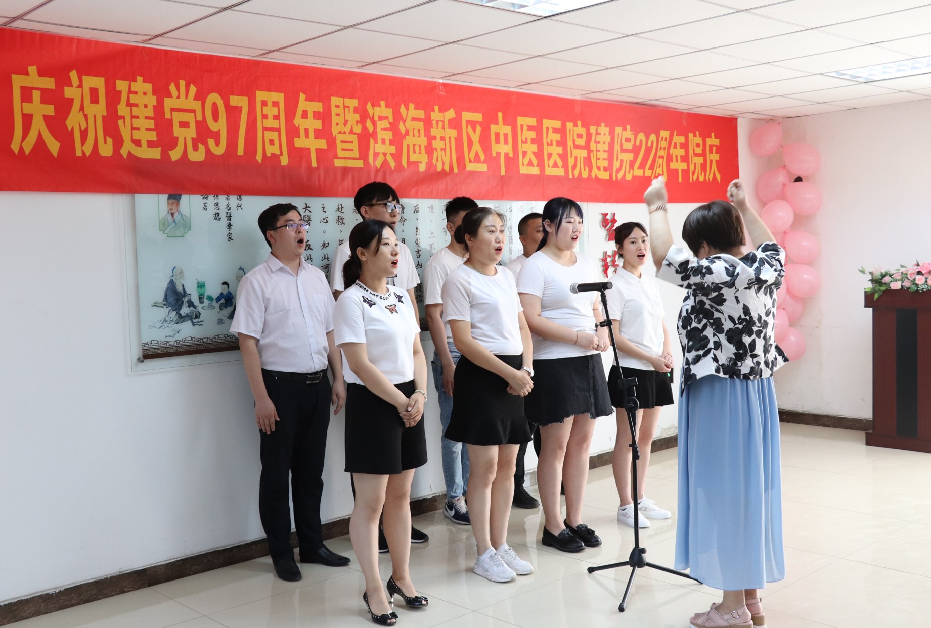 院党总支书记周冰为院庆活动致辞。他代表医院领导班子,感谢滨海新区中医医院全体干部职工,以执着的意志和高尚的品行,打造团队精神,凝聚智慧力量,让医院的华章一页更比一页辉煌。