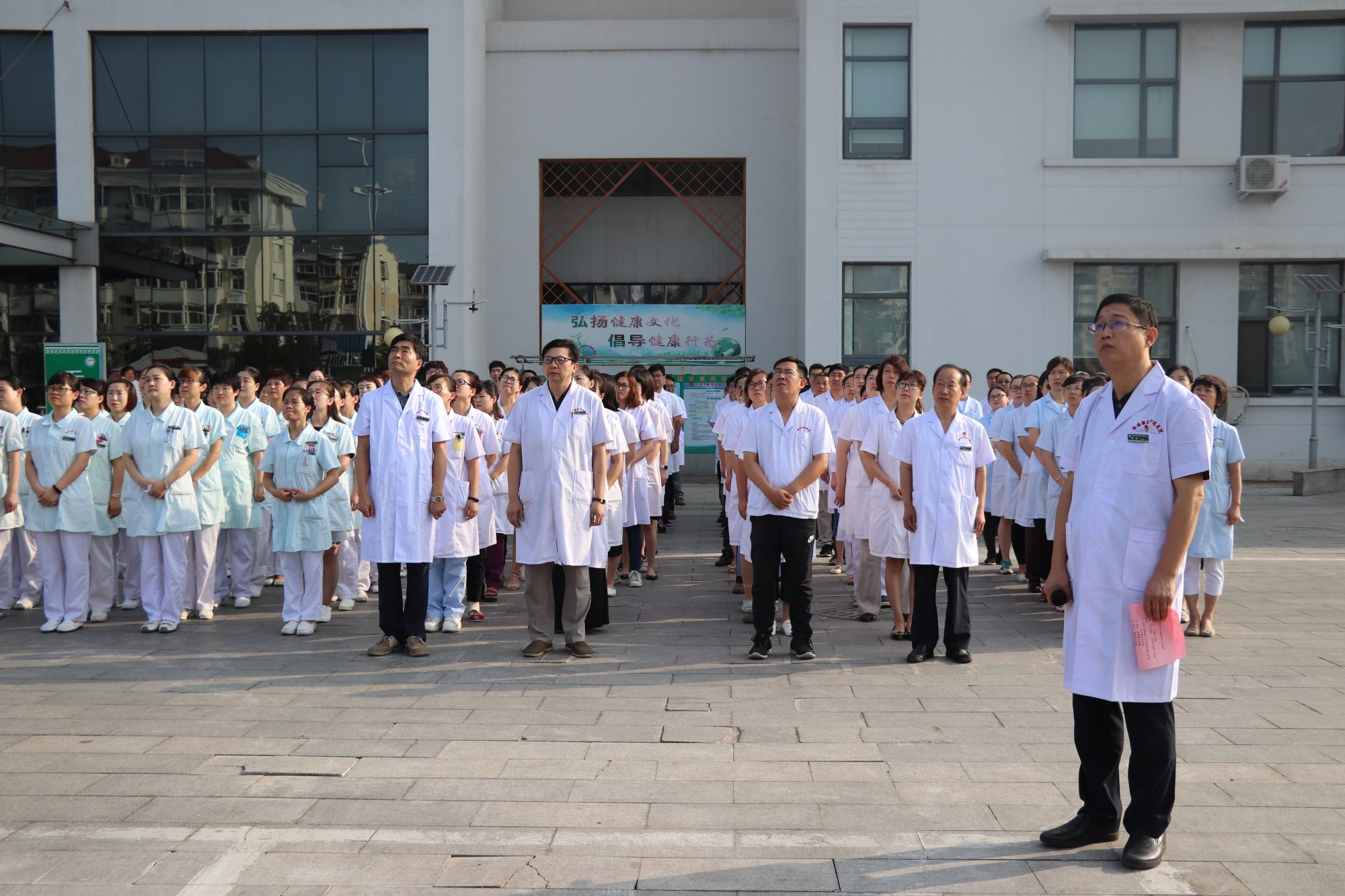 升旗仪式由院党总支周冰书记主持。他代表医院党政班子向全体员工表示亲切的问候,鼓励全院职工要牢记“精诚、仁术、传承、创新”的院训,发扬医院精神,勇担使命,砥砺奋进。