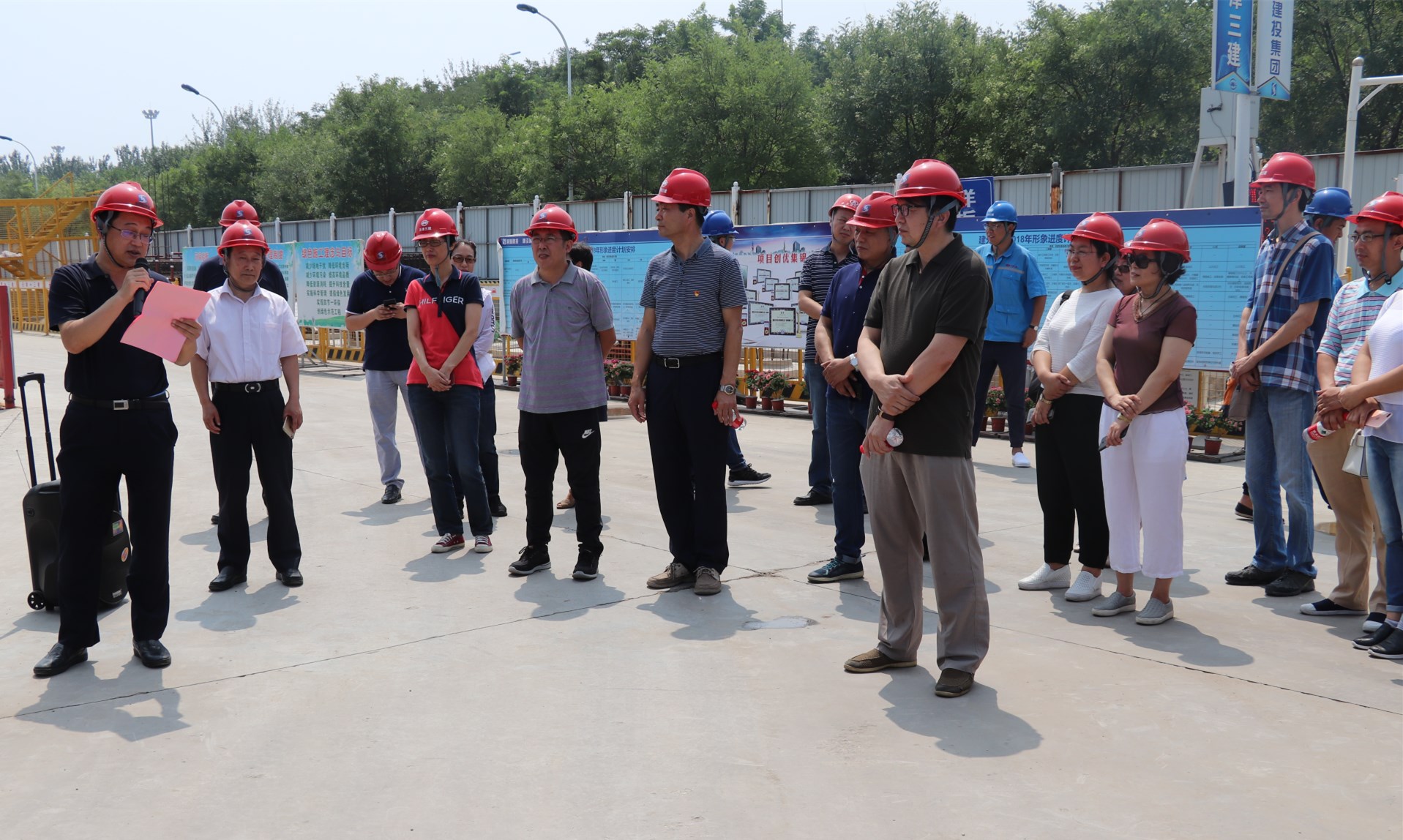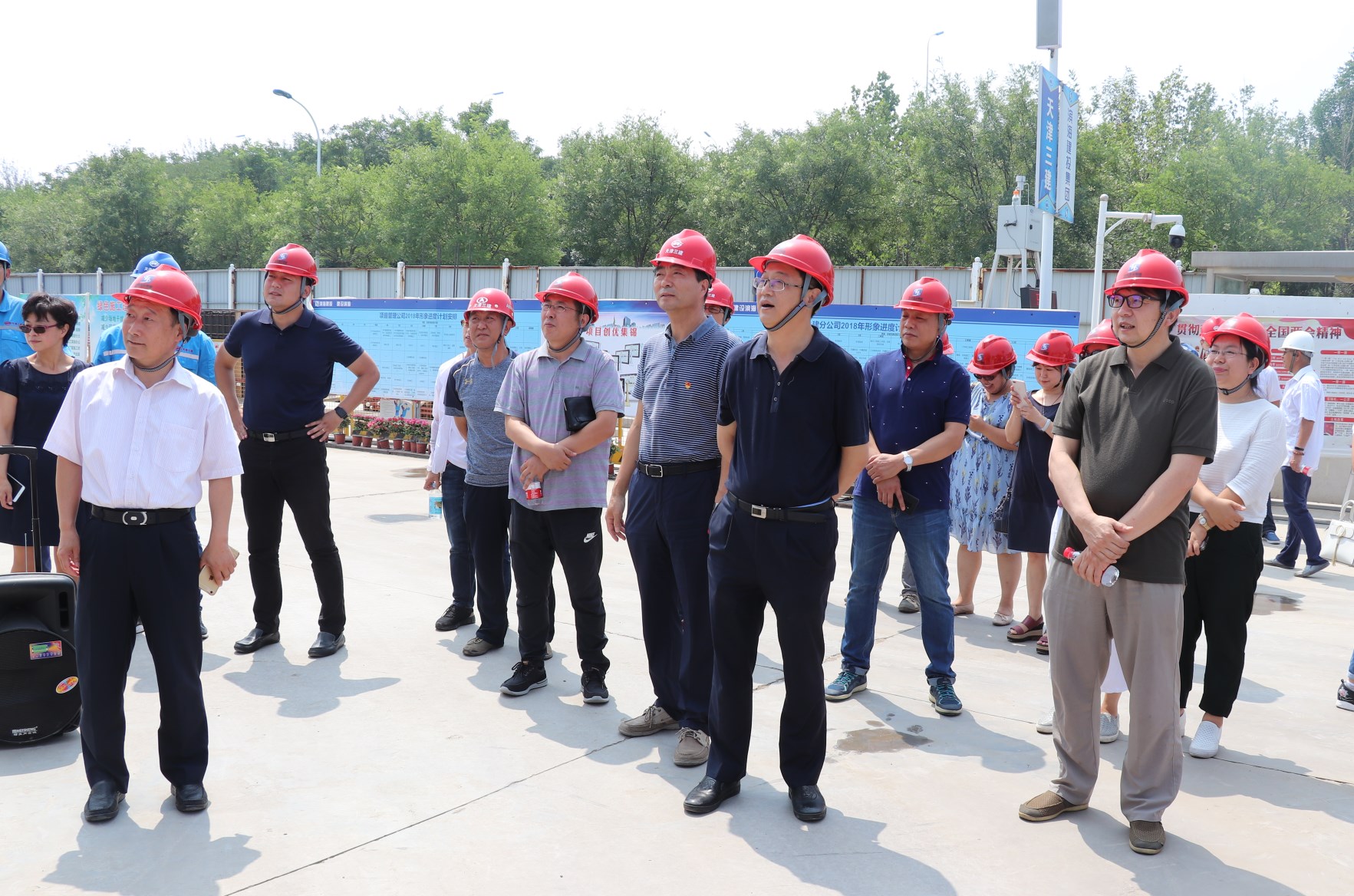 在结束本次参观活动前,全体中层干部合影留念,相约在主体建筑封顶以后再来看看。
